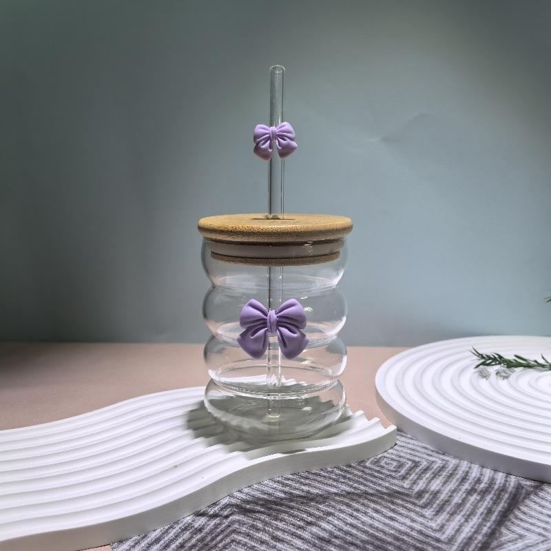 A luxurious glass cup with artistic touches and a wooden lid. Elegance begins with the details, with an elegant and environmentally friendly glass straw.