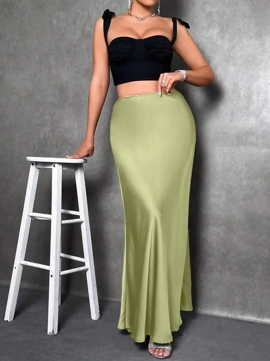 Luxurious satin maxi skirt with a flowy and elegant cut
